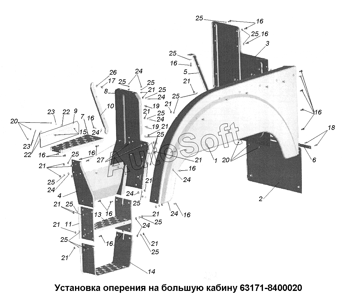 МАЗ | МАЗ-543403, 641705, 641708 (2010) | 63171-8403016 | Крыло правое | Установка оперения на большую кабину 63171-8400020 |