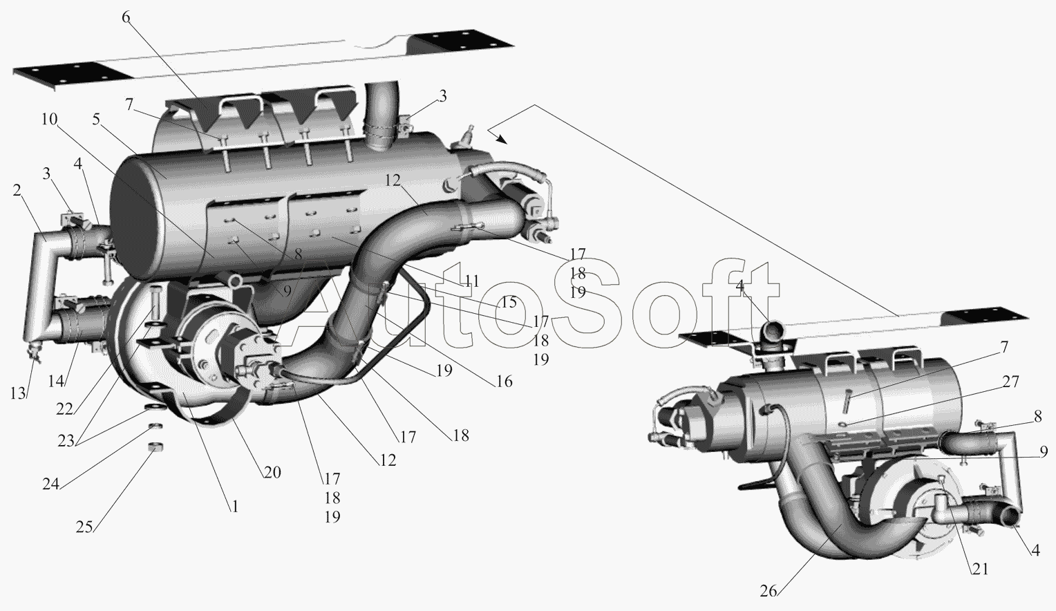 | МАЗ | МАЗ-631705, 631708 (2010) | 641708-1015410 | Топливопровод от насоса к котлу | Предпусковой подогреватель 641708-1015006 |