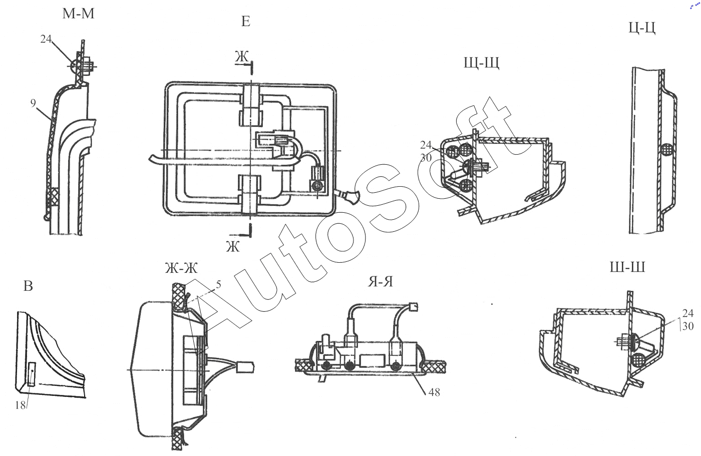 | МЗКТ | МЗКТ-65158 (1999) | 6422-3714021 | Держатель плафона | Установка электрооборудования на кабине. Установка контурных огней на кабине | |