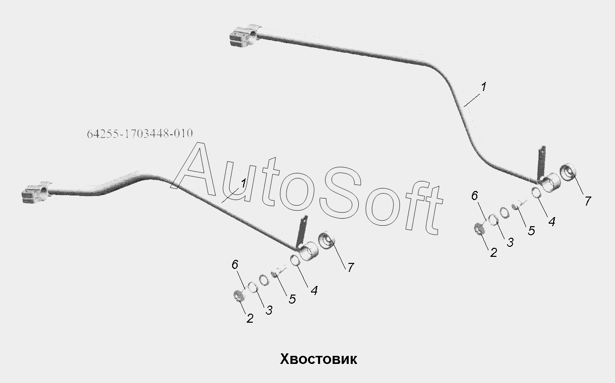 | МАЗ | МАЗ-543403, 641705, 641708 (2010) | 64221-1703448-010 | Хвостовик | Установка привода управления коробкой передач |