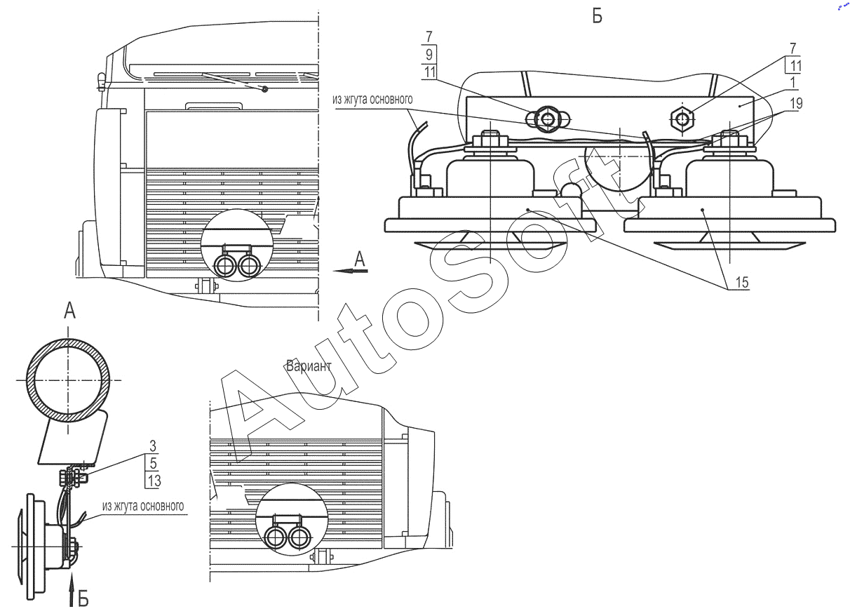 | МАЗ | МАЗ-6517X9-0000410 (2014) | 64229-3724411 | Кронштейн переходной электрического звукового сигнала | Установка электрического сигнала 543205-3700024, (-700) |
