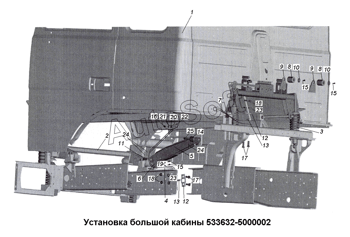| МАЗ | МАЗ-555102, 5551А2 (2007) | 64229-5001800 | Заднее подрессоривание | Установка большой подрессоренной кабины |