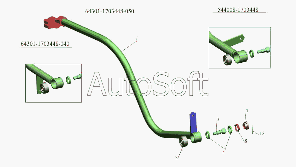 МАЗ | МАЗ-6430A8 (5440A8, 5440A5) (2008) | 64301-1703448-060 | Хвостовик | Установка привода управления коробкой передач 64301-1700002-040 |