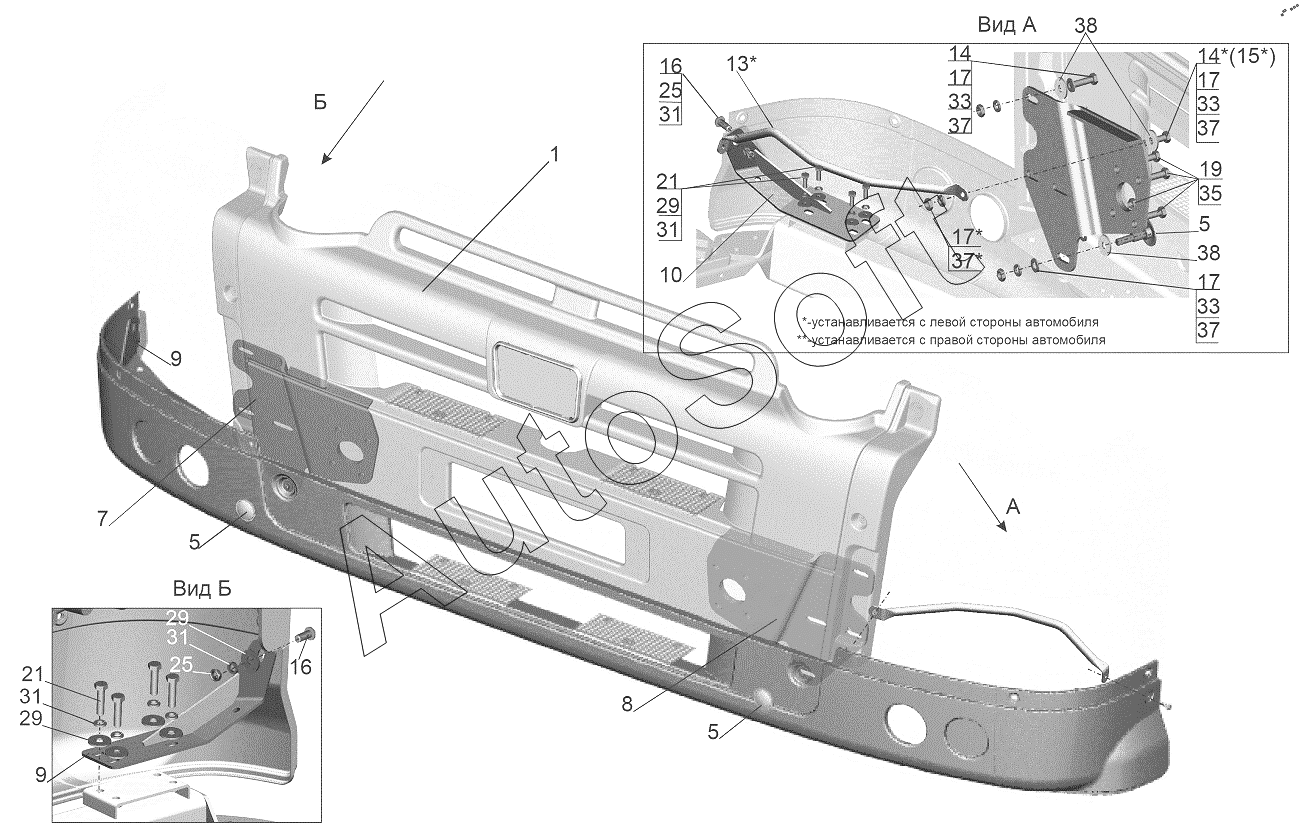| МАЗ | МАЗ-6312B9-0008425-012 (2015) | 643019-2803071-011 | Кронштейн | Установка переднего бампера 6312A9-2800003-000 |