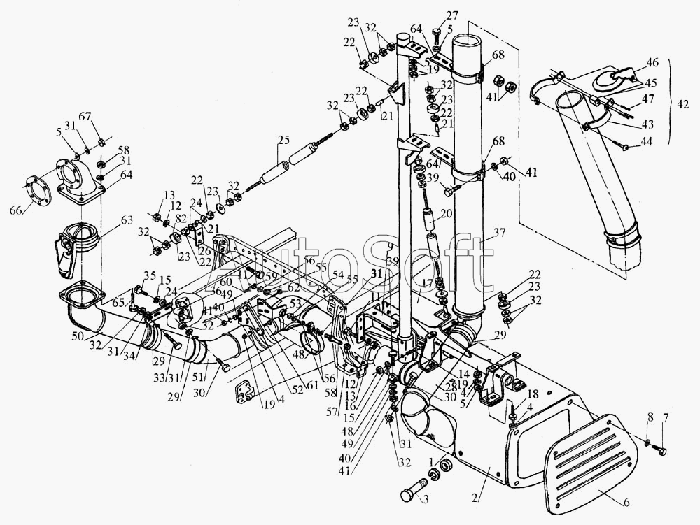 МАЗ | МАЗ-643068 (2003) | 64302-1203091 | Втулка | Установка системы выпуска |