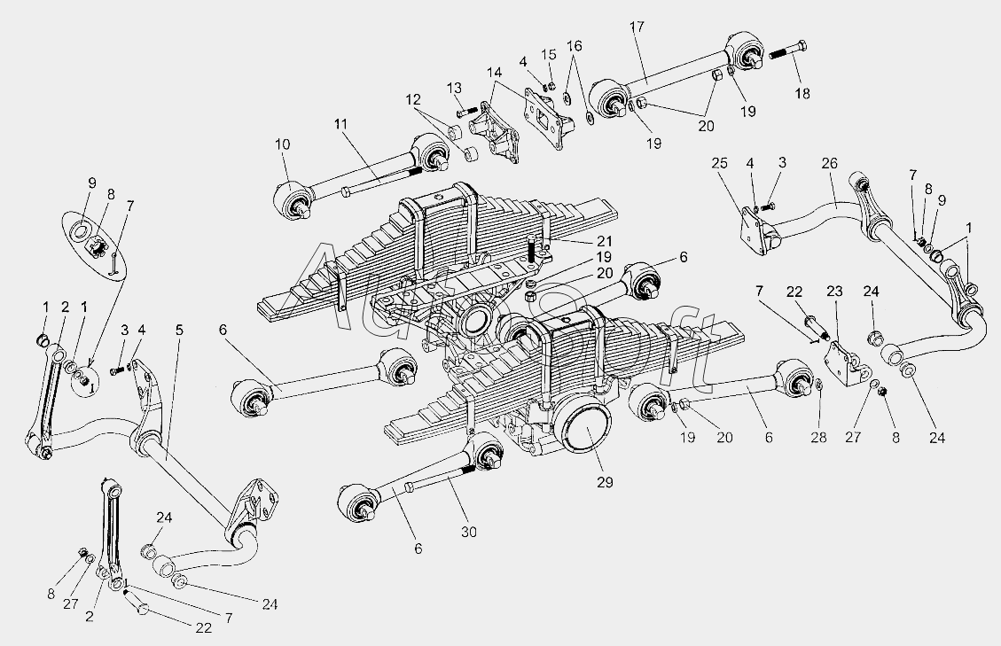 | МАЗ | МАЗ-631236 (2007) | 6501-2916006 | Вал стабилизатора с рычагами | Подвеска балансирная | |