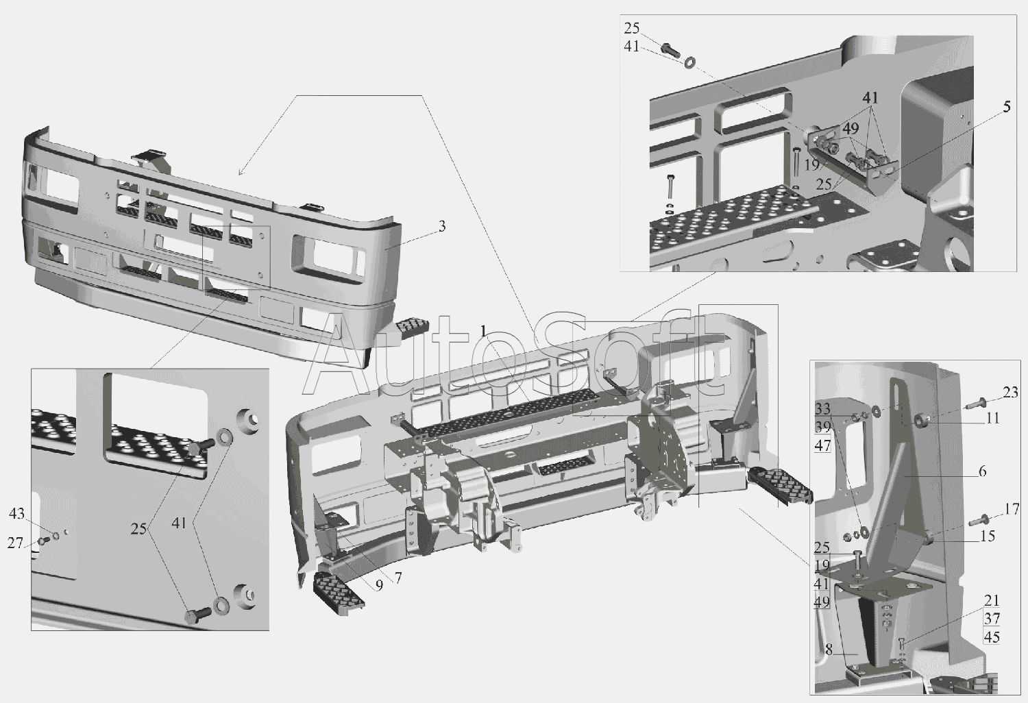 | МАЗ | МАЗ-6516V8-520 (6516V8-540) (2011) | 6516V8-2803047-000 | Кронштейн боковой | Установка бампера 6516V8-2803006-000 |