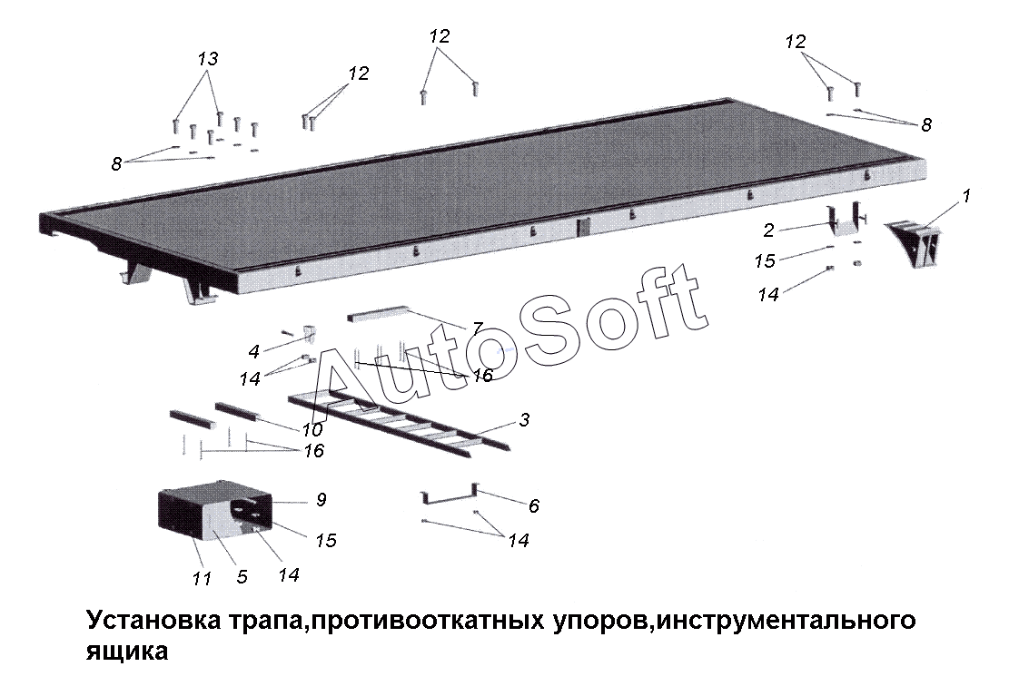 МАЗ | МАЗ-533731 (2012) | 93865-8210110 | Трап | Установка трапа, противооткатных упоров, инструментального ящика |