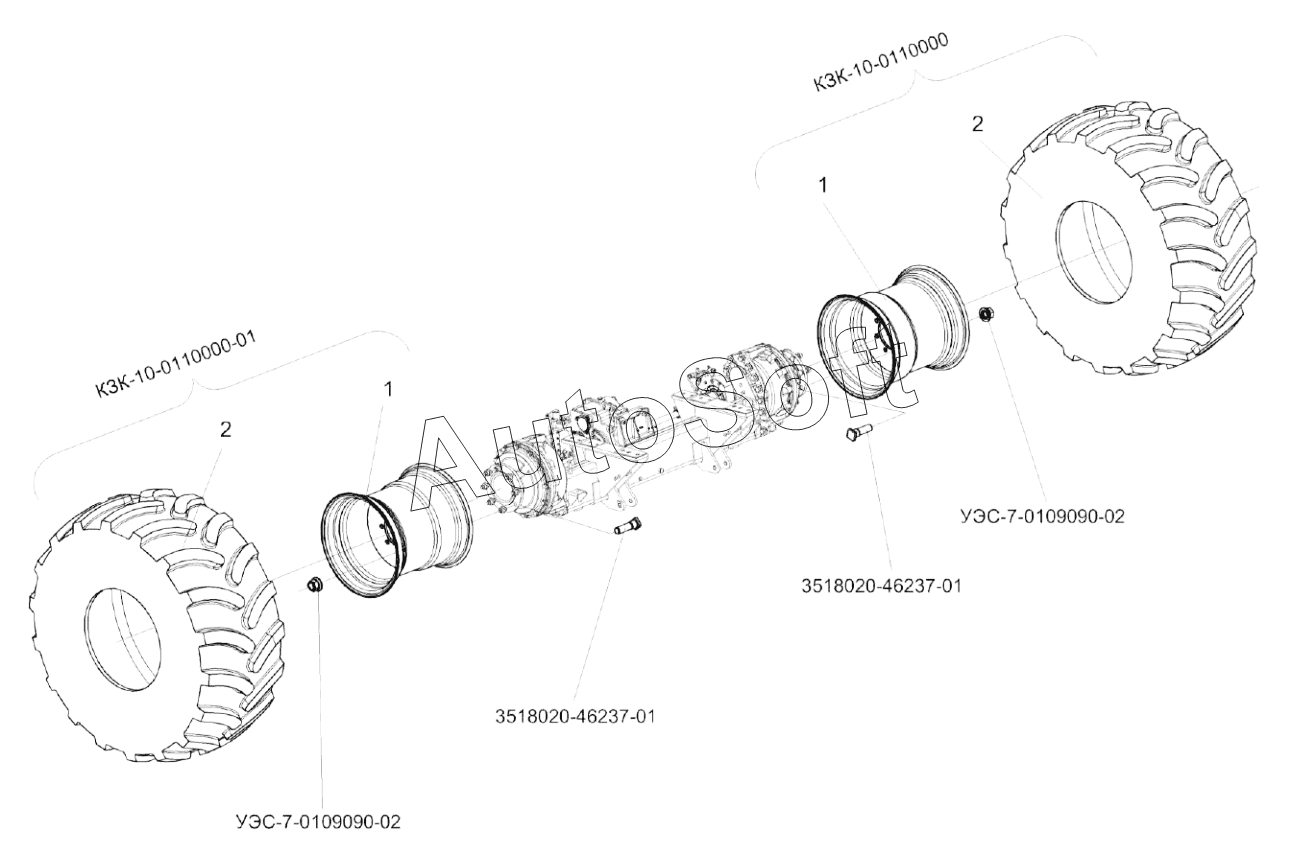 | Гомсельмаш | КВК-800 (FS80-5) (2013) | Шина28,1R26ФД12170А6 | Шина пневматическая 28,1R26 ФД12 170 А6 | Установка колес КЗК-10-0110000 и КЗК-10-0110000-01 |