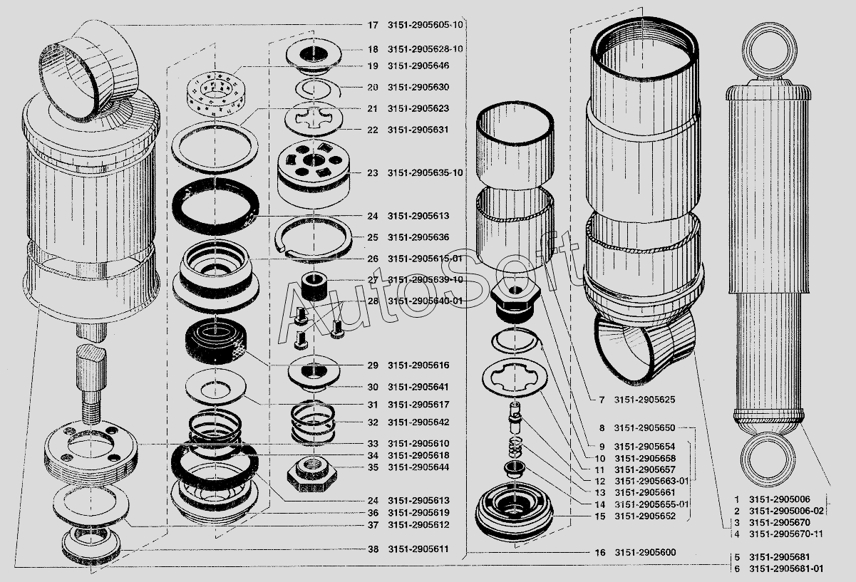 УАЗ | УАЗ-3151 (1993) | 3151-2905006 | Амортизатор в сборе | Амортизаторы передней подвески | |