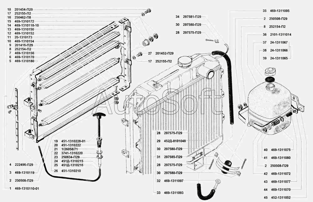 | УАЗ | УАЗ-3151 (1993) | 2101-1311014 | Бачок расширительный | Жалюзи и привод, бачек расширительный |
