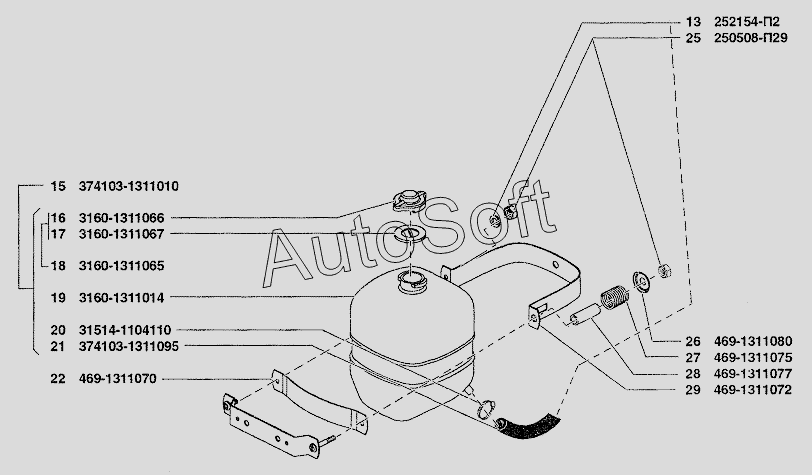 | УАЗ | УАЗ-3160 (2002) | 31604-1311014 | Бачок расширительный в сборе | Бачек расширительный | |
