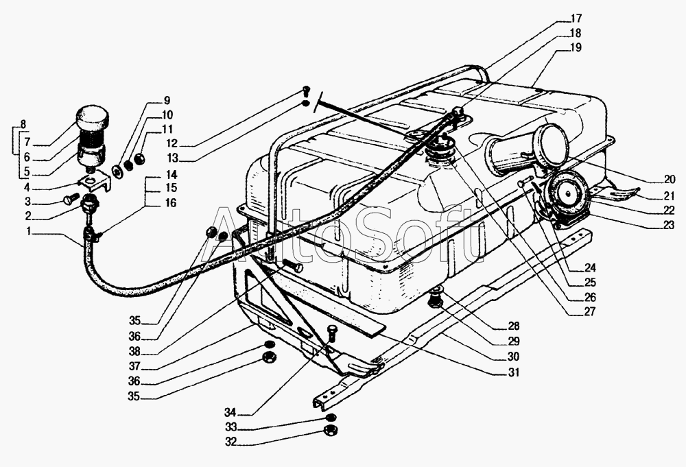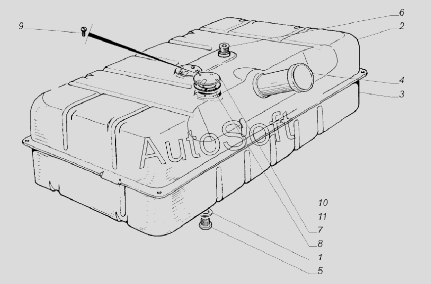 ГАЗ | ГАЗ-33081 (2008) | 33104-1101010 | Бак топливный | 33097-1101001. Установка топливного бака | |