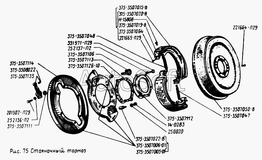 | УралАЗ | УРАЛ-375 | 375-3507050-В | Барабан ручного тормоза | Ручной тормоз (Рис. 96) |