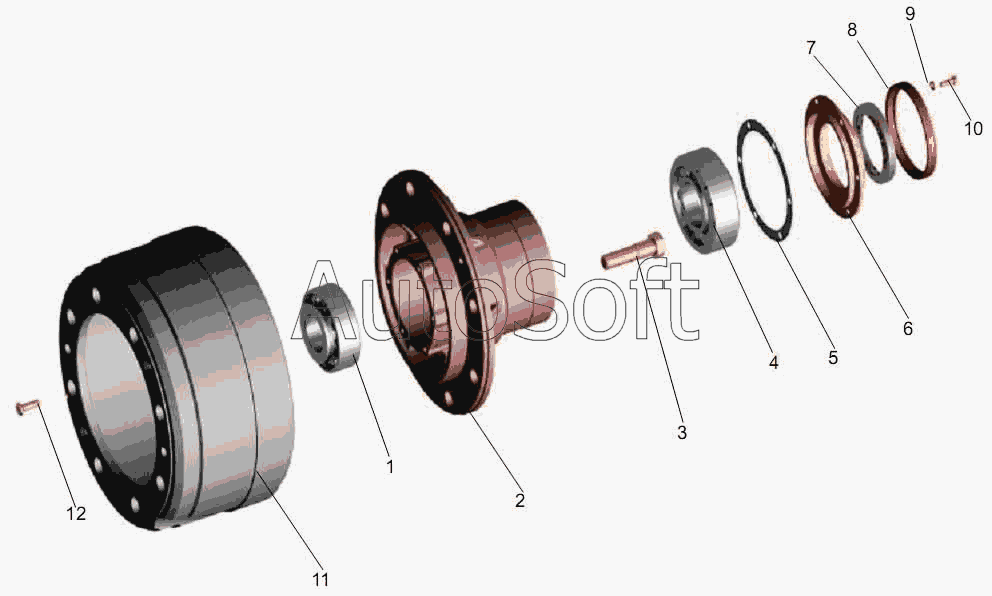 АМАЗ | МАЗ-256 (вариант) (2006) | 4370-3501070 | Барабан | Ступица переднего колеса |