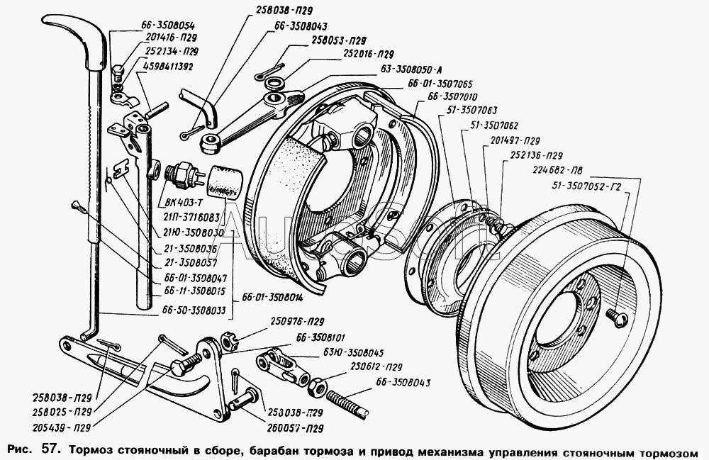 | ГАЗ | ГАЗ-66 (Каталог 1983 г.) (1983) | 51-3507052-Г2 | Барабан стояночного тормоза | Стояночный тормоз и управление |
