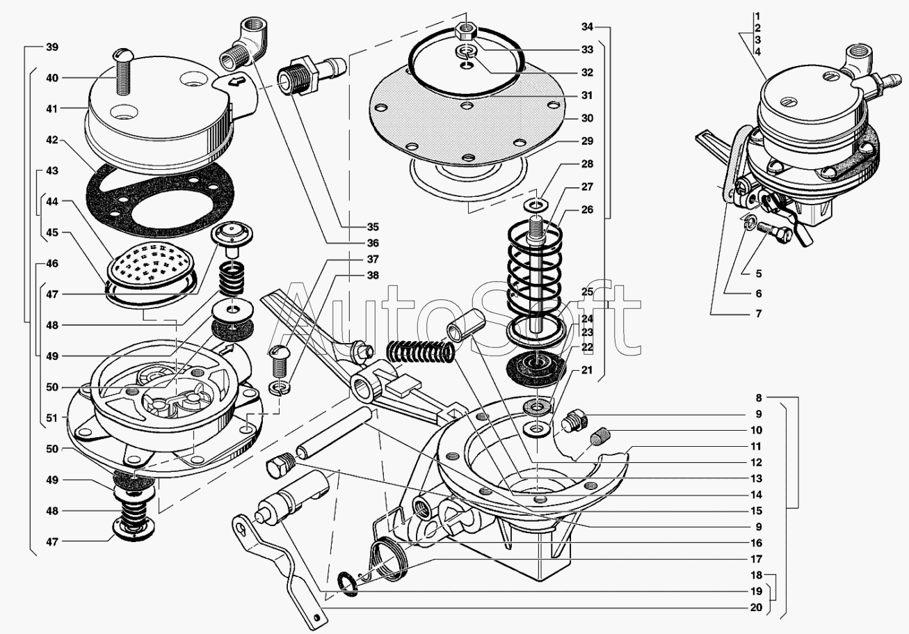 Насос бензиновый (большой) низкого давления (диафрагменный c механическим приводом и рычагом ручной подкачки топлива)