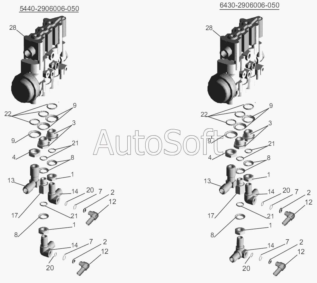 МАЗ | МАЗ-5440B9, 6430B9 (2013) | АДЮИ.453648.001 | Блок электромагнитных клапанов БЭК | Блок электропневмоклапанов ECAS с угольниками 5440-2926006-050, 6430-2926006-050 |