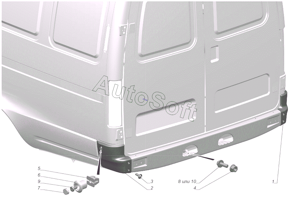 | ГАЗ | ГАЗ-2705 (ГАЗель) (2000) | 2705-2804020 | Буфер задний правый | Буфер задний, световозвращатель и противотуманный фонарь |
