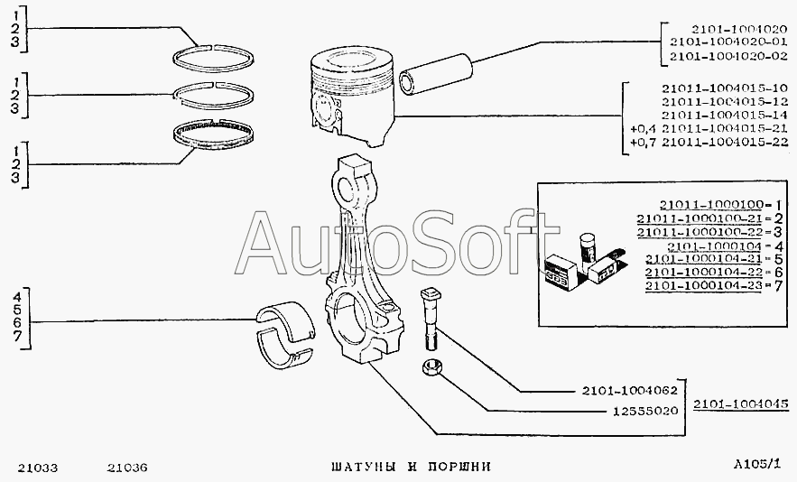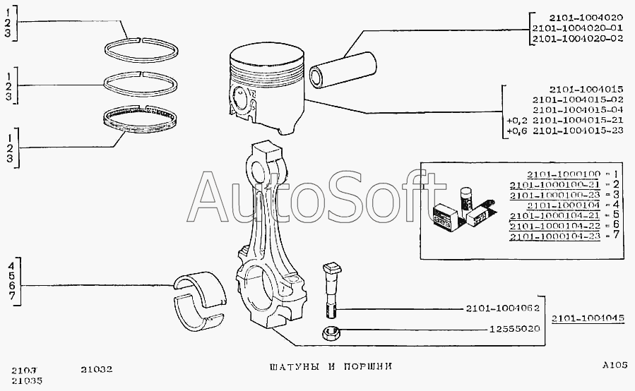 | ВАЗ | ВАЗ-2101 (1982) | 2101-1004062 | Болт шатуна | Шатуны и поршни | |
