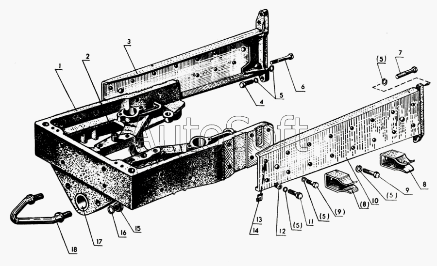 Описание: Предназначен для установки двигателя и радиатора, и соединения посредством лонжеронов с корпусом сцепления.