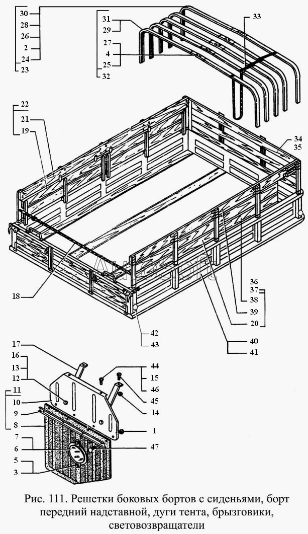 | ГАЗ | ГАЗ-3308 (2002) | 3301-8511188 | Фартук заднего брызговика | Решетки боковых бортов с сиденьями, борт передний надставной, дуги тента... | |