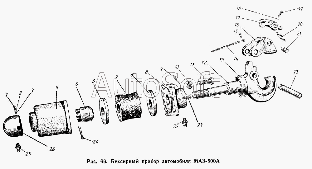 | МАЗ | МАЗ-503А | 500-2805074 | Буфер буксирного крюка | Буксирный прибор автомобиля МАЗ-500А |