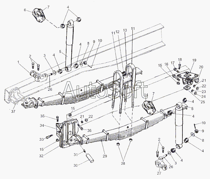 МАЗ | МАЗ-543403, 641705, 641708 (2010) | 501-2912624-01 | Буфер | Установка подвески задней 5434-2900002-20 |