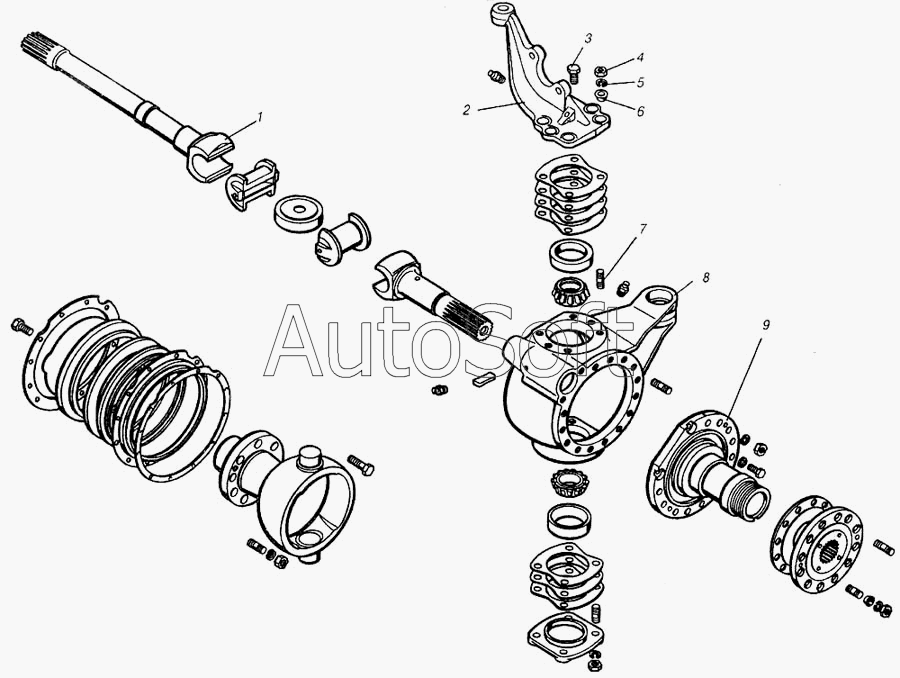 | МАЗ | МАЗ-537 | 537-2304081 | Цапфа поворотного кулака | Ступица колеса |