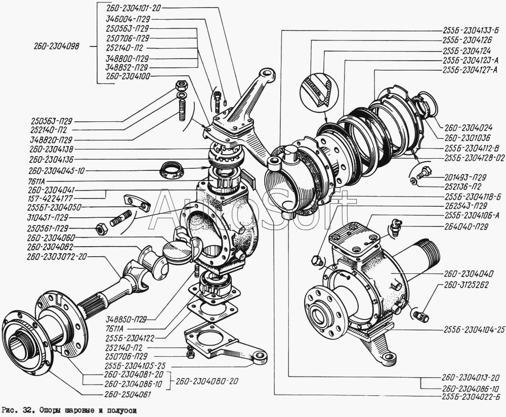 КрАЗ | КрАЗ-6443 | 260Л-2304080 | Цапфа переднего моста со втулкой | Опоры шаровые и полуоси переднего моста | |