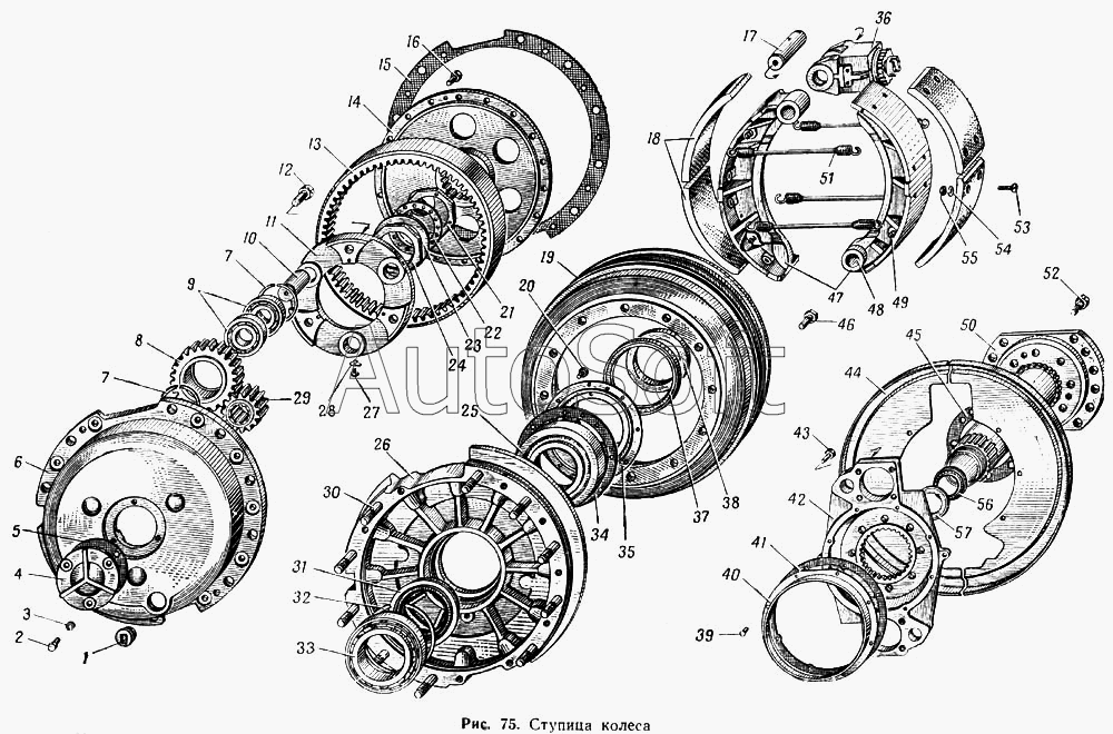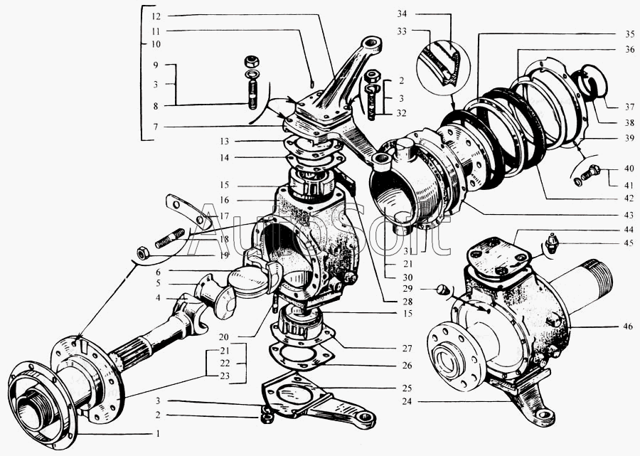 УралАЗ | УРАЛ-375 | 375-2304080-Д | Цапфа поворотная переднего моста со втул кой в сборе | Передний мост (Рис. 55) | |