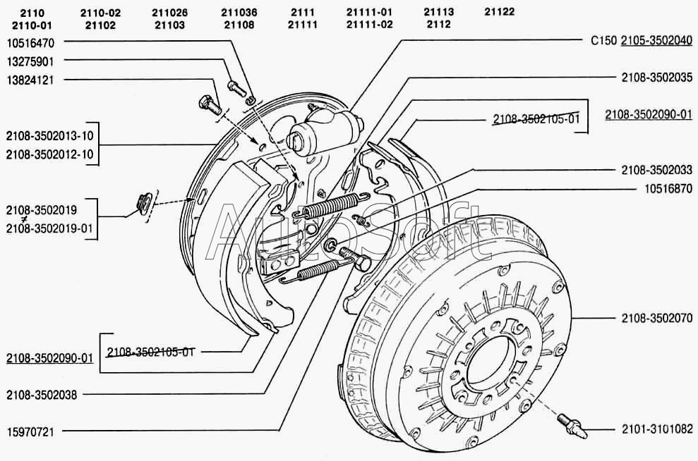 | ВАЗ | ВАЗ-2120 (Надежда) | 2105-3502040 | Цилиндр колесный заднего тормоза | Привод гидротормозов | |