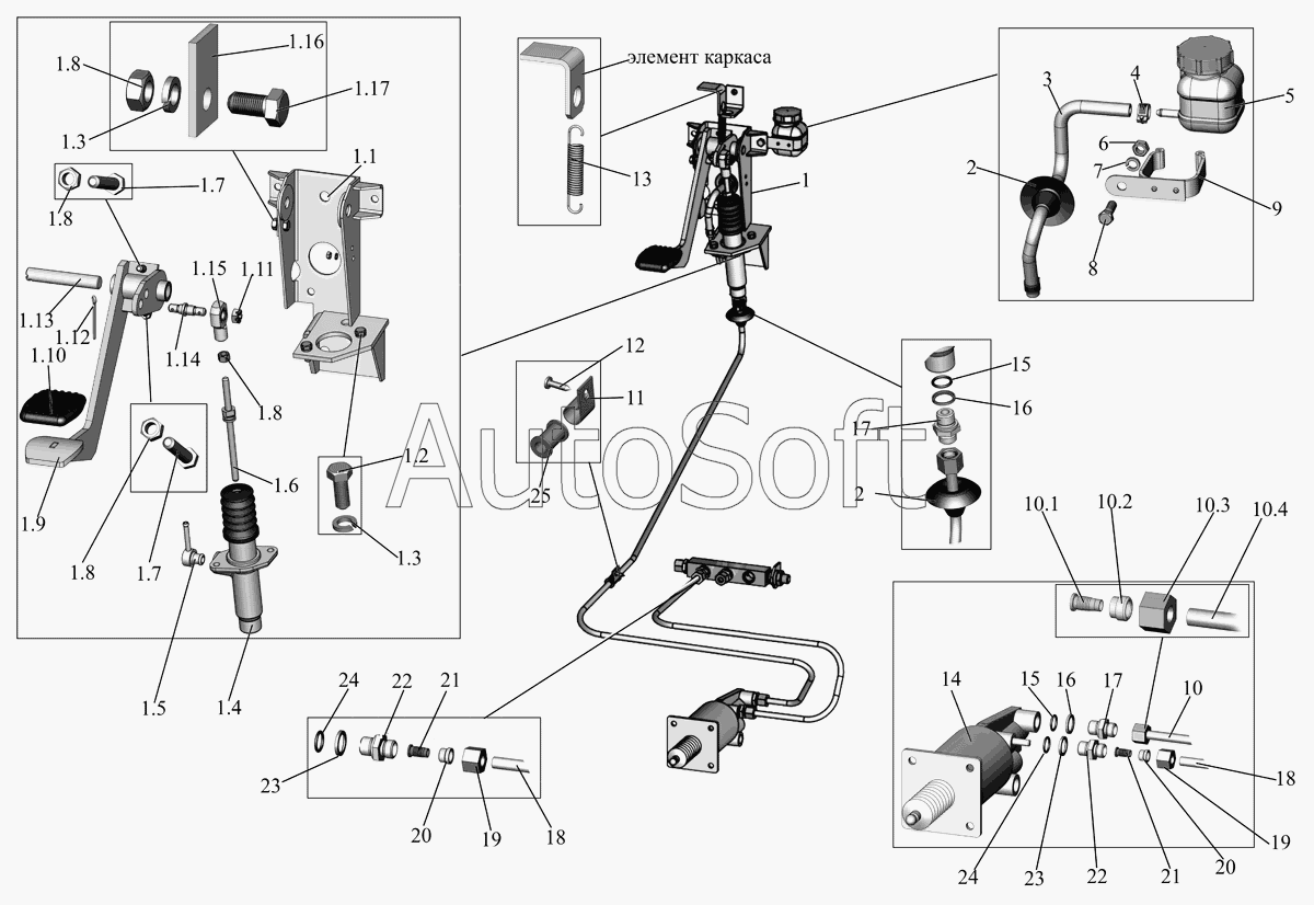 | АМАЗ | МАЗ-231 (2015) | KG23027.0.1 | Цилиндр подпедальный | Установка привода сцепления |