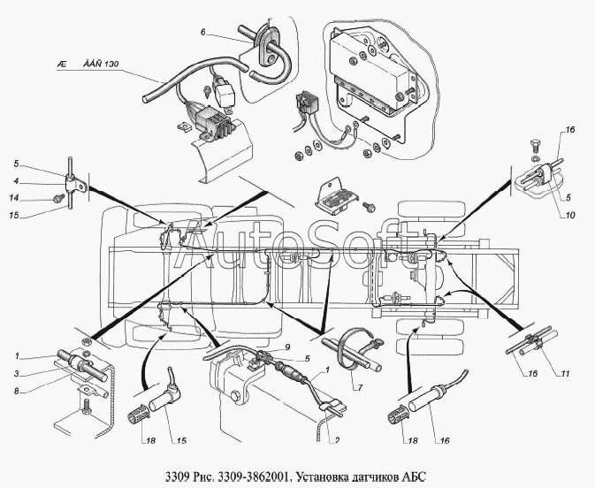 | ГАЗ | ГАЗ-3309 (Евро 2) (2008) | 0486001066 | Датчик АБС прямой | Установка датчиков АБС |