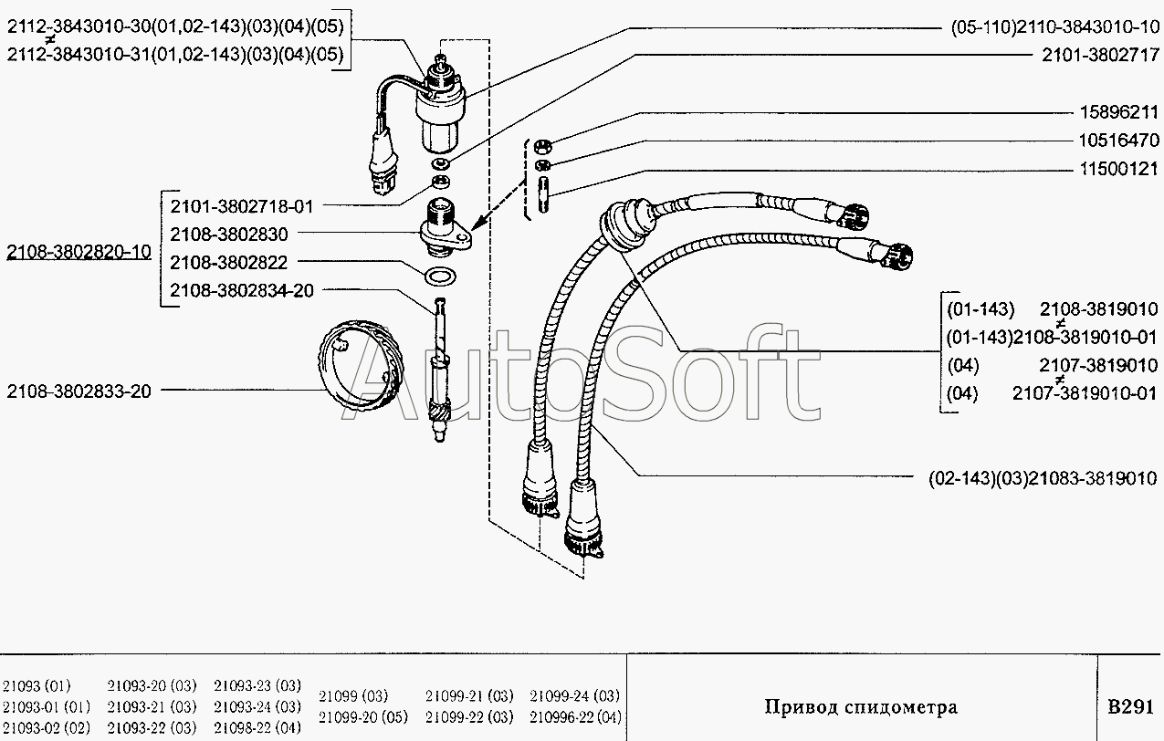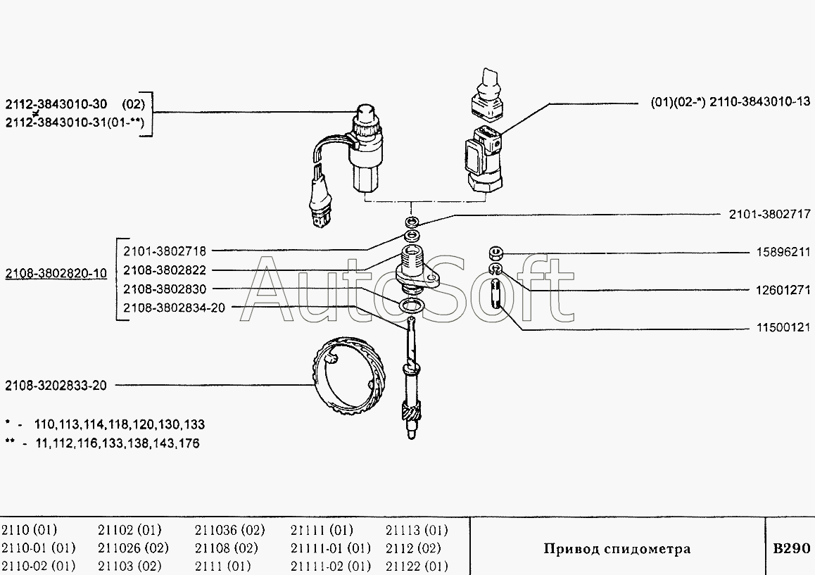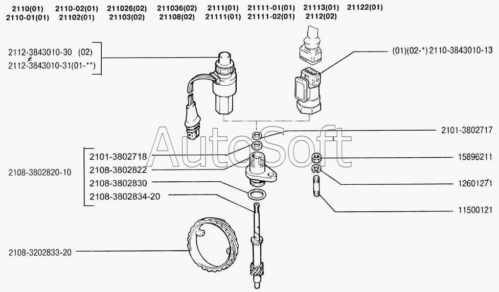 | ВАЗ | ВАЗ-2110 (2000) | 2112-3843010-31 | Датчик скорости | Привод спидометра |