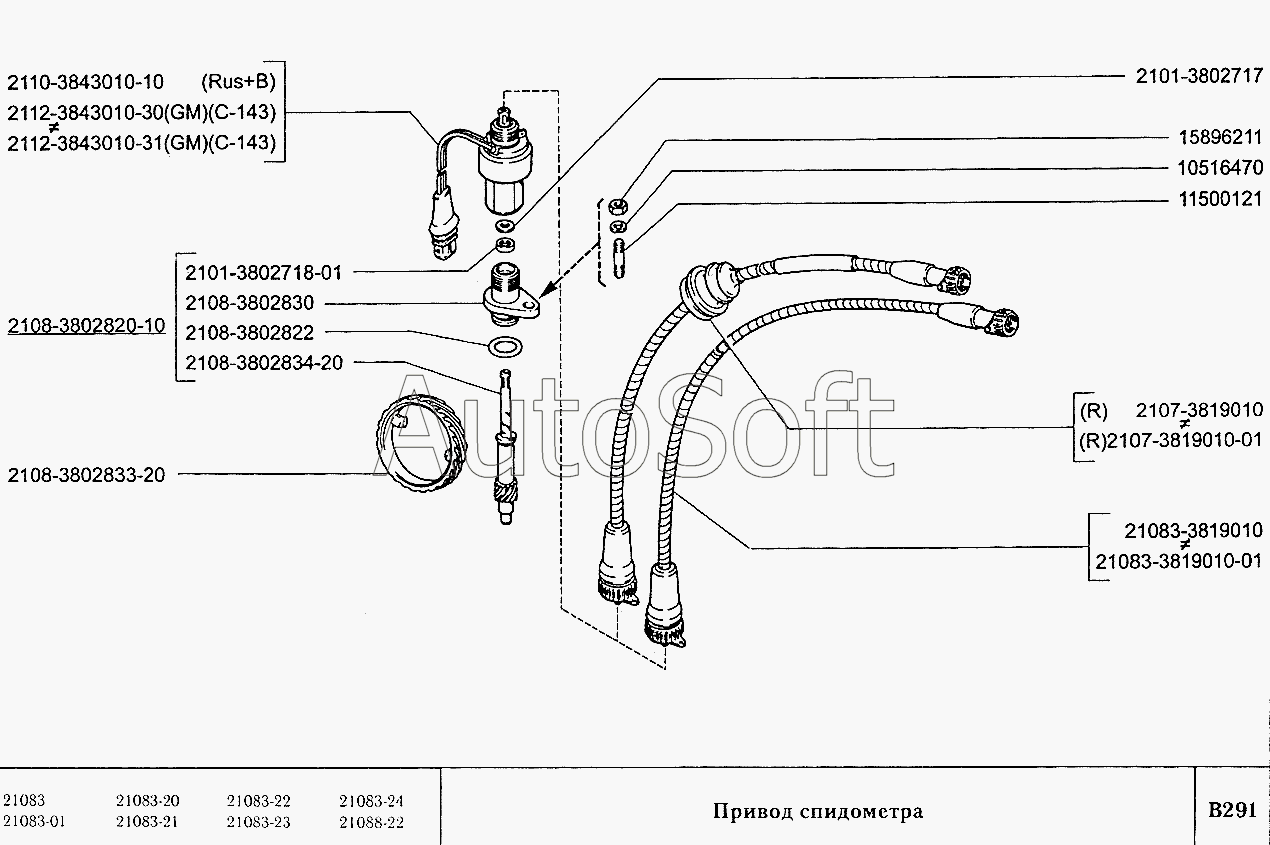 | ВАЗ | ВАЗ-2110 | 2110-3843010 | Датчик скорости | Привод спидометра |