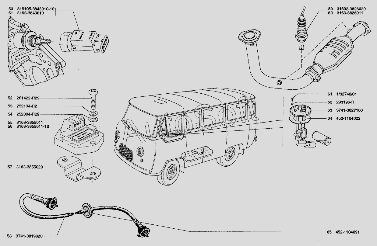 УАЗ | УАЗ-37419 (2009) | 3163-3843010 | Датчик скорости 343.3843 | Валы гибкие, приборы специальные, датчик указателя уровня топлива, датчик скорости, датчик детонаций |