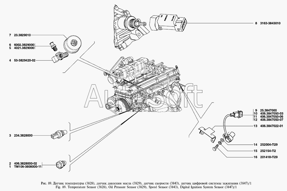 УАЗ | УАЗ Patriot (2005) | 3163-3843010 | Датчик скорости 343.3843 | Датчик температуры, датчик давления масла, датчик скорости, датчик фазы, датчик детонаций, датчик массового расхода воздуха | |
