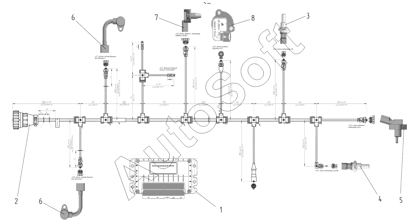 | Трубка со шлангом обратка форсунок L-1630мм | |