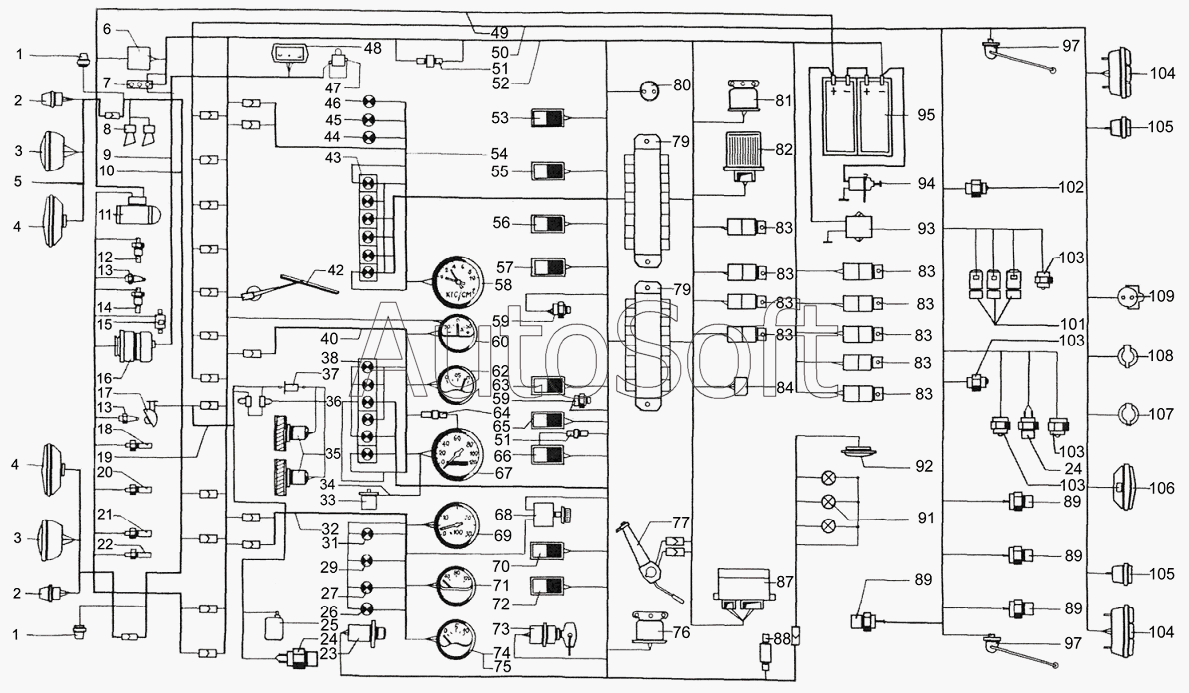 КрАЗ | КрАЗ-64372, 6133М6 (2006) | АДЮИ.407529.001 | Датчик аварийного давления масла | Схема электрооборудования |