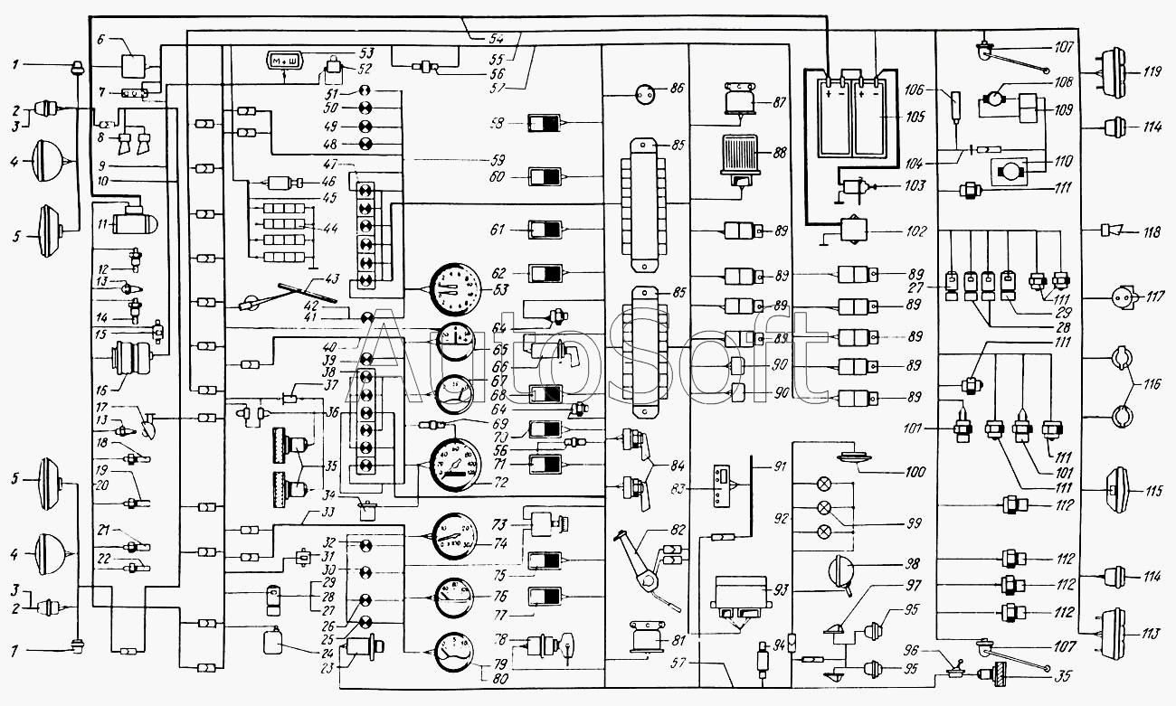 КрАЗ | КрАЗ-65055 | АДЮИ.407529.001 | Датчик аварийного давления масла | Схема электрооборудования |