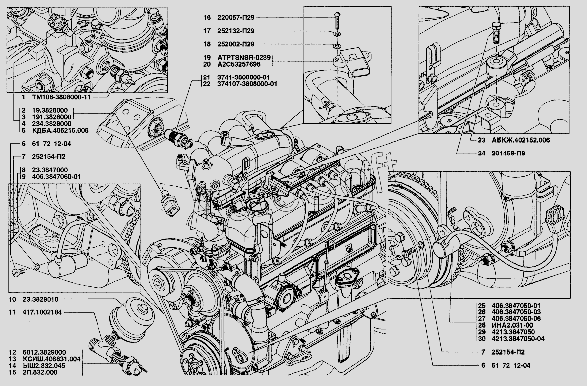 УМЗ | УМЗ-4213 (Евро 3) (2008) | КДБА.405215.006 | Датчик температуры охлаждающей жидкости 405215 | Датчики температуры, детонации, абсолютного давления, синхронизации фазы |