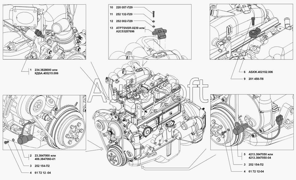УАЗ | УАЗ-37419 (2009) | КДБА.405215.006 | Датчик температуры охлаждающей жидкости 405215 | Приемник указателя температуры, датчик температуры, датчик давления масла, датчик фазы, датчик детонаций (Вар.1) |