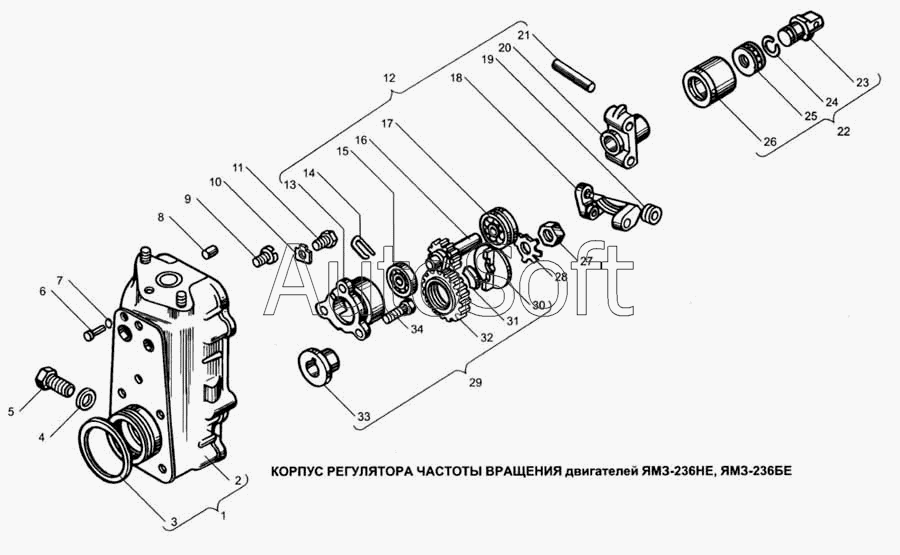 | ЯМЗ | ЯМЗ-238 АК | 236-1110040-012 | Державка грузов со стаканом | Регулятор частоты вращения |