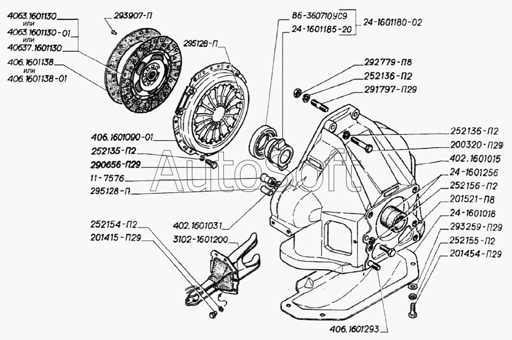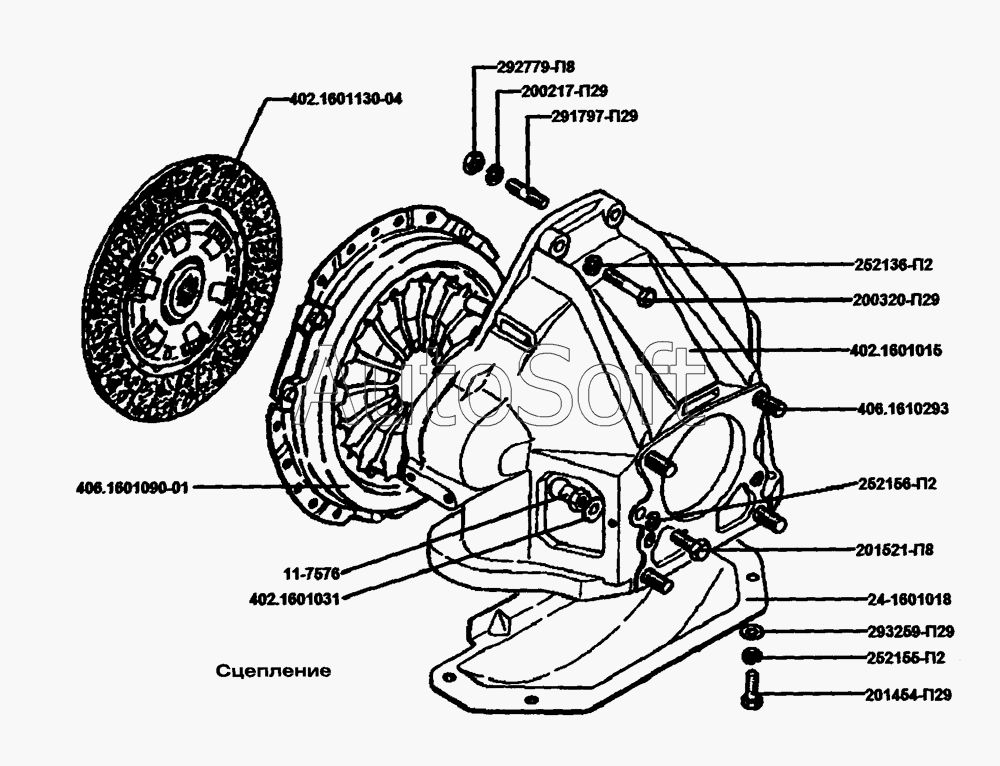Волга, ГАЗель с двигателем ЗМЗ 402, 406, 409 унив. (4 и 5 ст. КПП) D=240мм