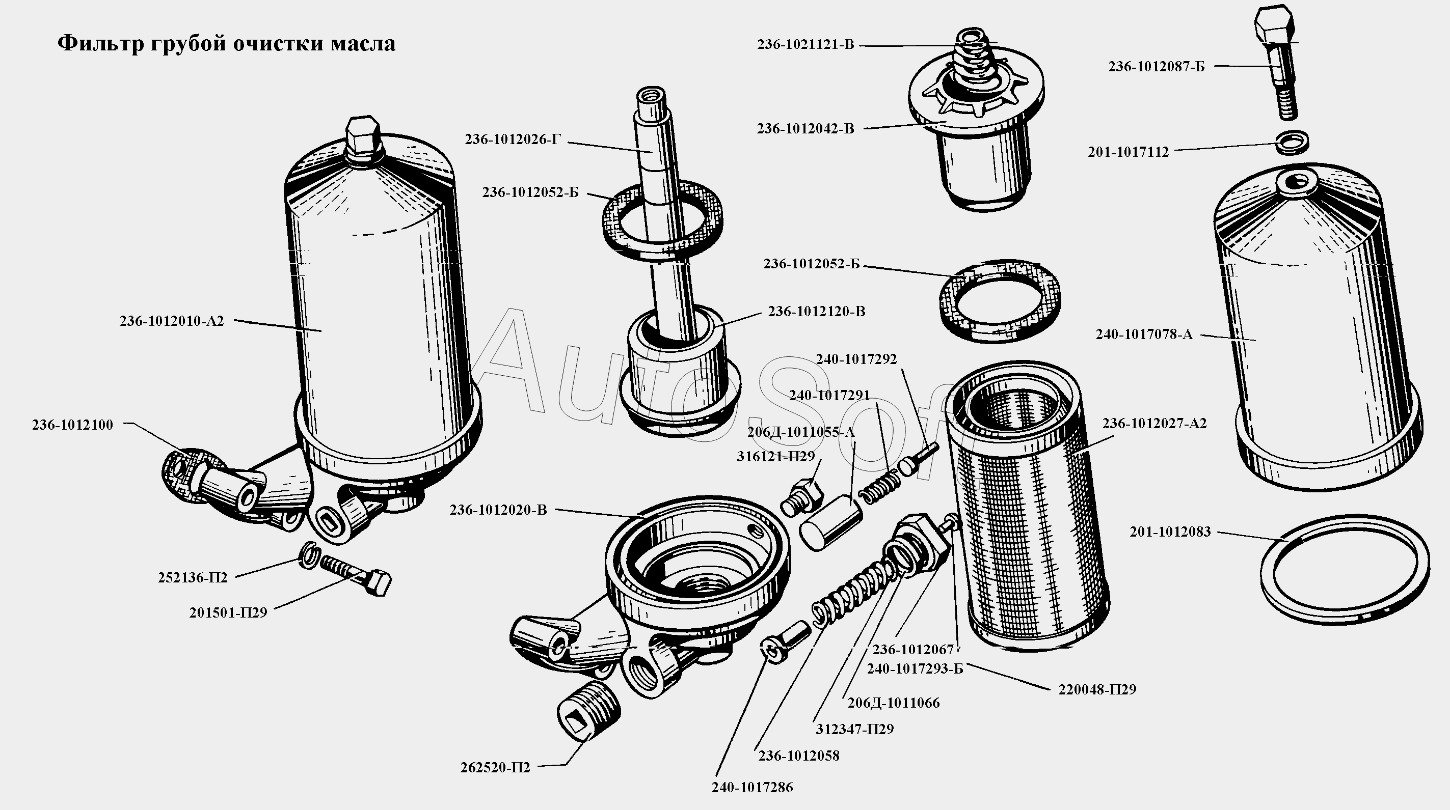 | МАЗ | МАЗ-500А | 236-1012010-А | Фильтр масляный грубой очистки в сборе (на двигатели с № 173724 устанавливается фильтр 236-1012010-АЗ с фильтрующим элементом 236-1012027-А) | Фильтр грубой очистки масла |