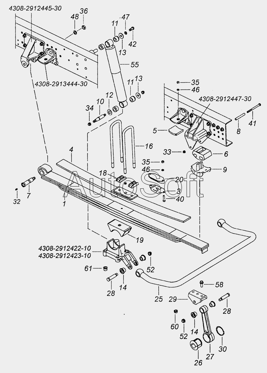 | Стремянка рессоры задней 6520-2912408 (L=455, гайка М30) | |