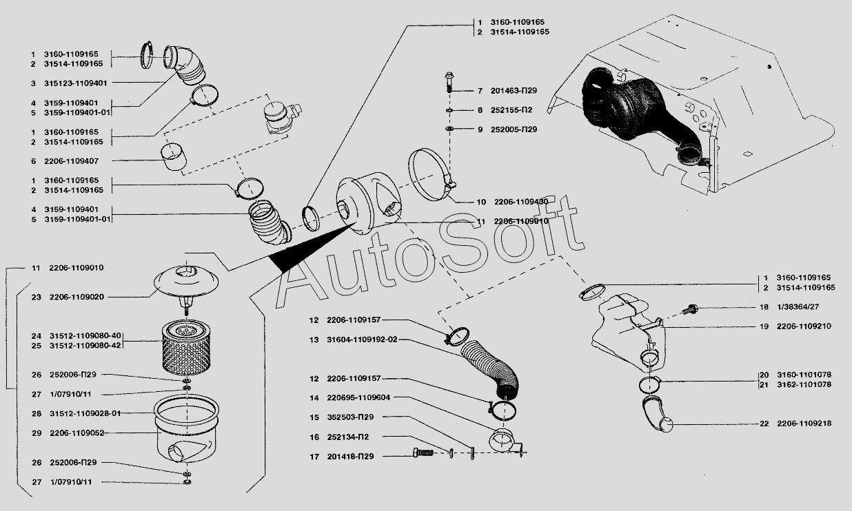 УАЗ | УАЗ-31519 (2005) | 31512-1109080-01 | Элемент фильтрующий | Фильтр воздушный | |