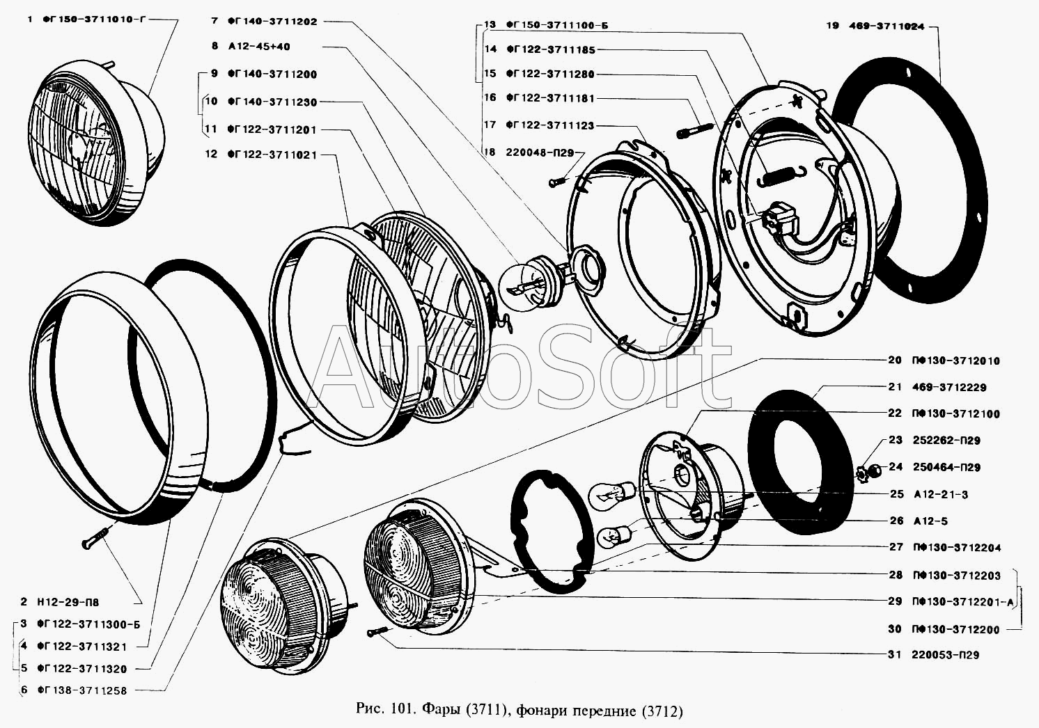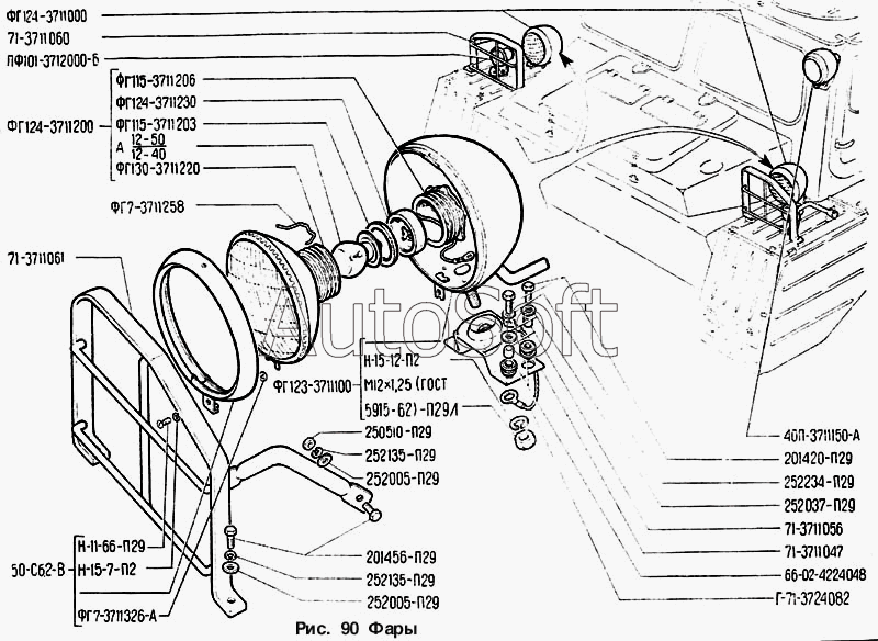 | ГАЗ | ГАЗ-52-02 | ФГ105-3711200 | Оптический элемент в сборе (13-3711015) | Переключатель света ножной, фары, подфарники и указатели поворота | |