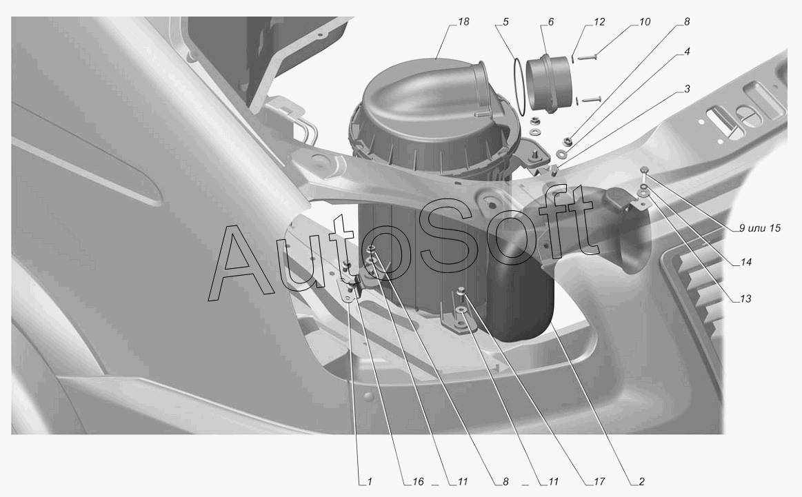 Фильтр воздушный (пластмассовый корпус с ЭФВФ [4216-1109013 / 28-1109013 / GB-9434-9434M / EF-24]) (отличие от [АК2705А/АК2217-1109010]: поворотом верхней крышки)